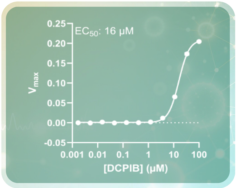 Proprietary ION technology that measures thallium efflux in response to TMEM175 activation. This assay produces the largest screening window of all available assays, and can be used to identify activators or inhibitors. TMEM175 activation is visualized in real time upon stimulation with DCPIB.